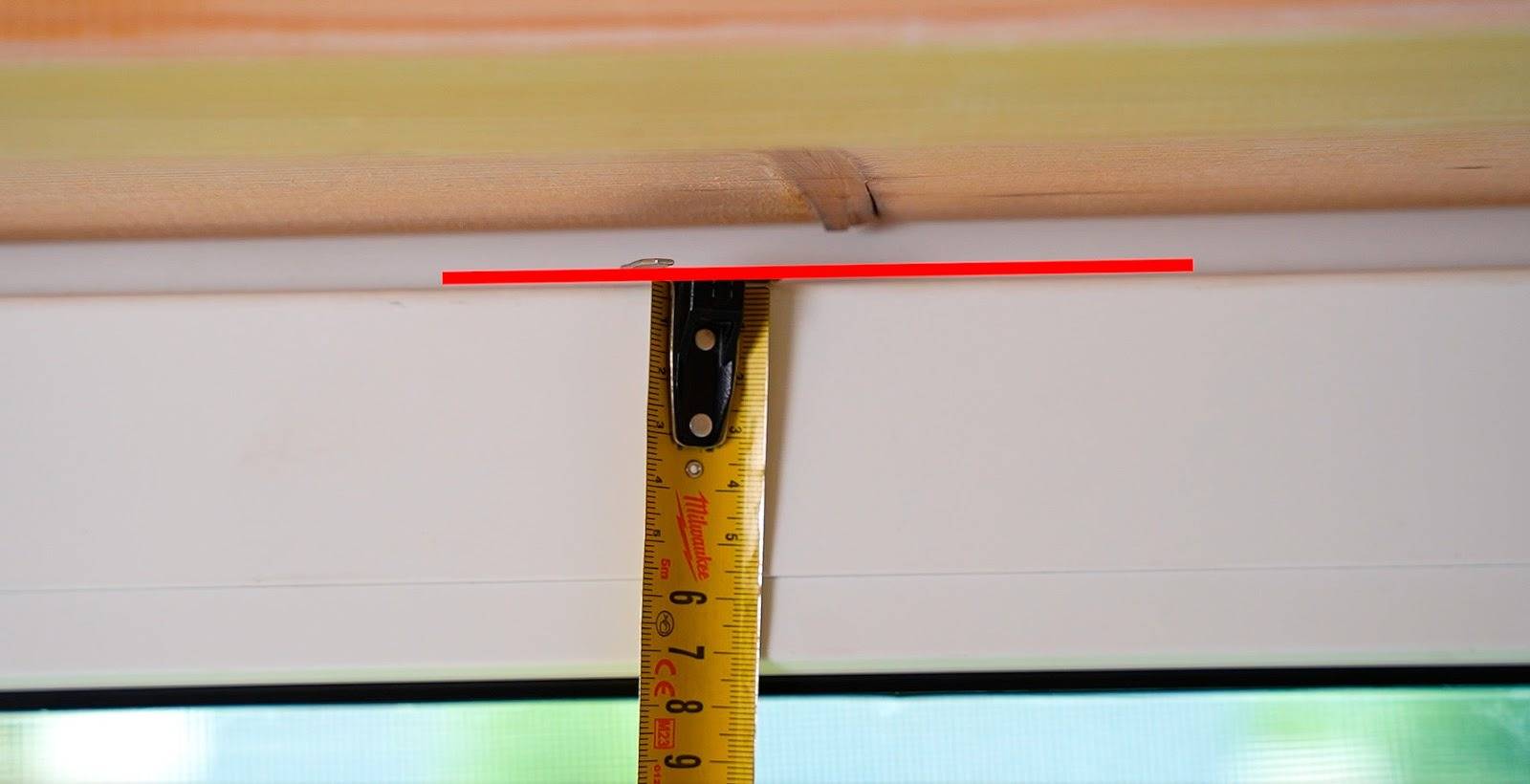 Итак, берём рулетку, прикладываем к левому замку штапика и отмеряем расстояние до правого замка штапика. Размеры должны быть с точностью до миллиметра. Например, у нас расстояние 73 сантиметра и 6 миллиметров - это будет ширина ткани. Механизм с металической трубой наверху будет шире ткани с каждой стороны по 2 сантиметра.